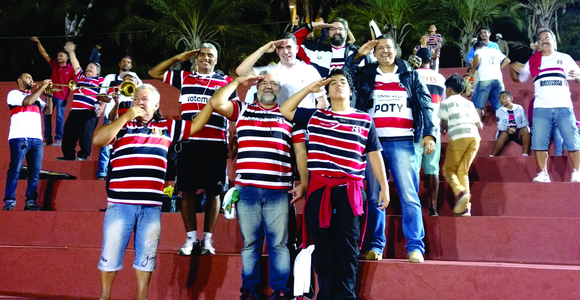 Esta tocou o tempo todo. Intervalo para descanso? Só no intervalo do jogo. Se não sabiam tocar os hinos do Santa Cruz e os gritos de guerra, ao menos o “tri – tricolor, tri – tri – tri – tri – tricolor” e o refrão: santa cruz! santa cruz! junta mais essa vitória… eram repetidos exaustivamente e me arrepiavam até a alma, cada vez que eram tocados.