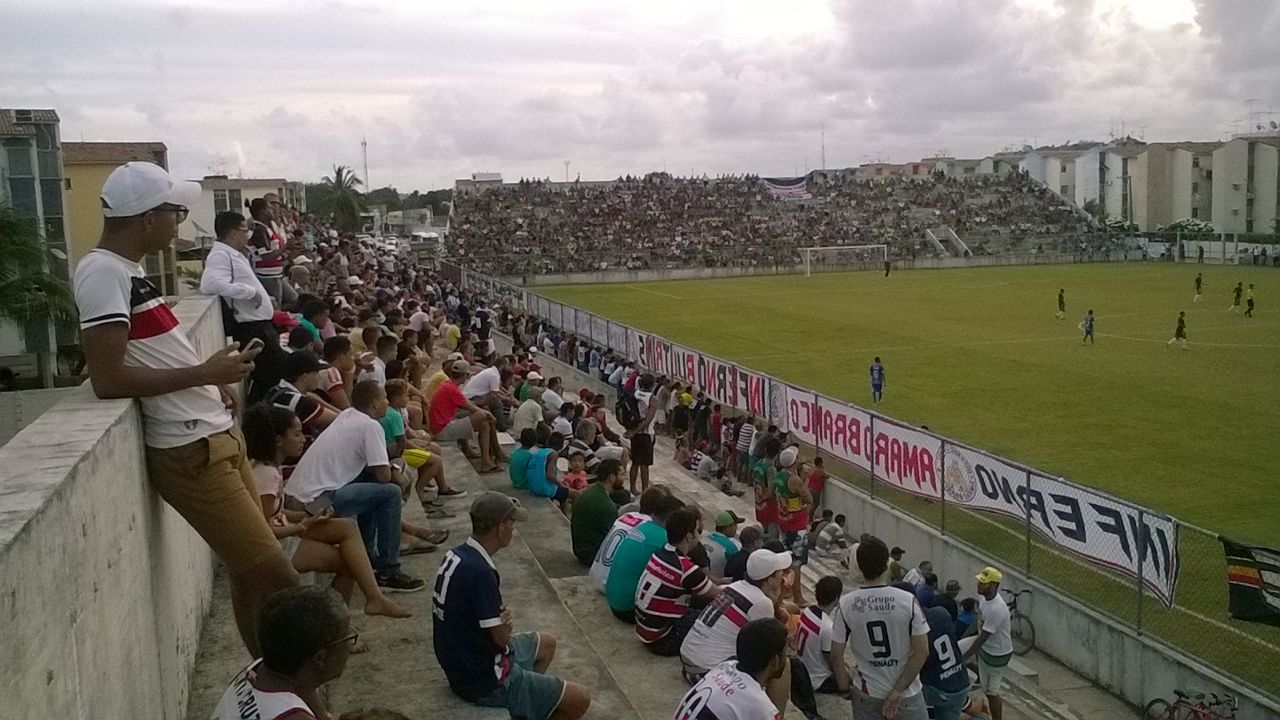 Chegamos já bem perto do começo do jogo. Rio Doce estava em festa. Esequias disse: “rapaz, o Santa Cruz devia era trazer alguns jogos oficiais para cá”.